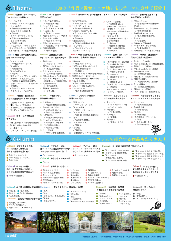大ヒット映画の舞台・ロケ地を、豊富な写真とともに100掲載した日本のロケ地ガイドブックの決定版。全国47都道府県を全て紹介!一度は観たい名作映画と行って損しない名所の組み合わせを厳選してアニメ、恋愛、ホラーなど映画ジャンルごとに掲載。13コラムはすごい映画のこぼれ話。監督や関係者への取材を元に、なぜそこがロケ地に選ばれたのか等トリビアもまとめた充実の一冊!